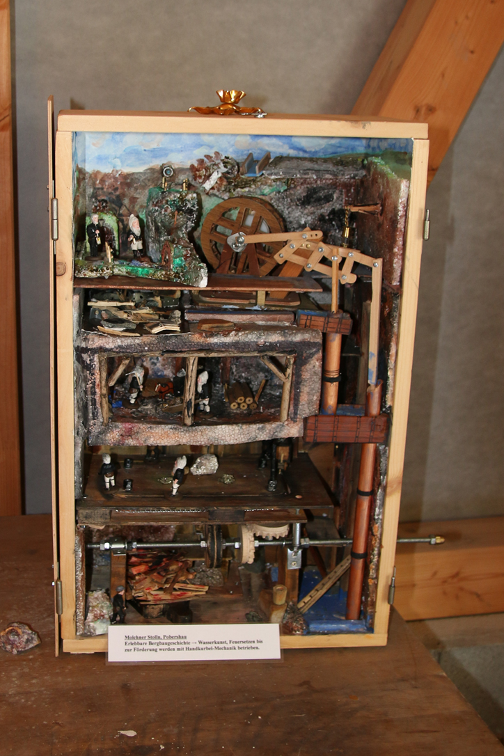 Jedes dieser 30 Bergwerke ist ein Unikat. Angefangen bei der Größe, über Aussehen und Gestaltung bis hin zum Antrieb ist alles völlig verschieden. Dabei sind von Olbernhau bis Schneeberg fast alle Bergbaugebiete vertreten und in der Zukunft liegt die Orientierung an der Erarbeitung weiterer Beiträge für das UNESCO-Welterbe-Projekt "Montanregion Erzgebirge".
