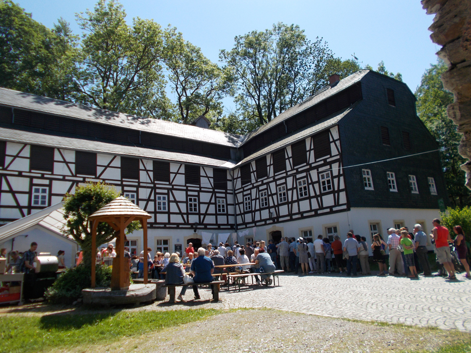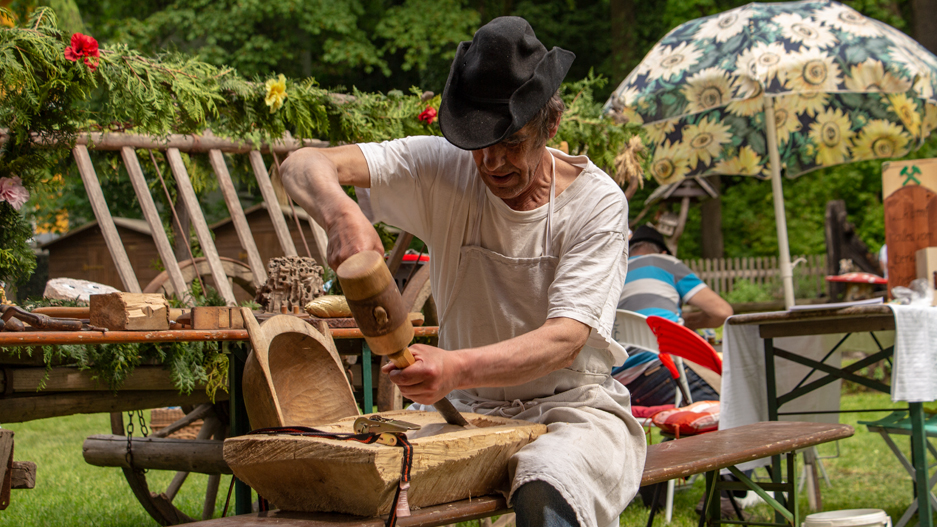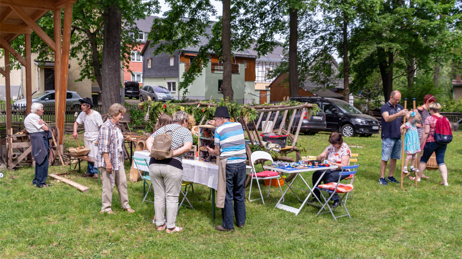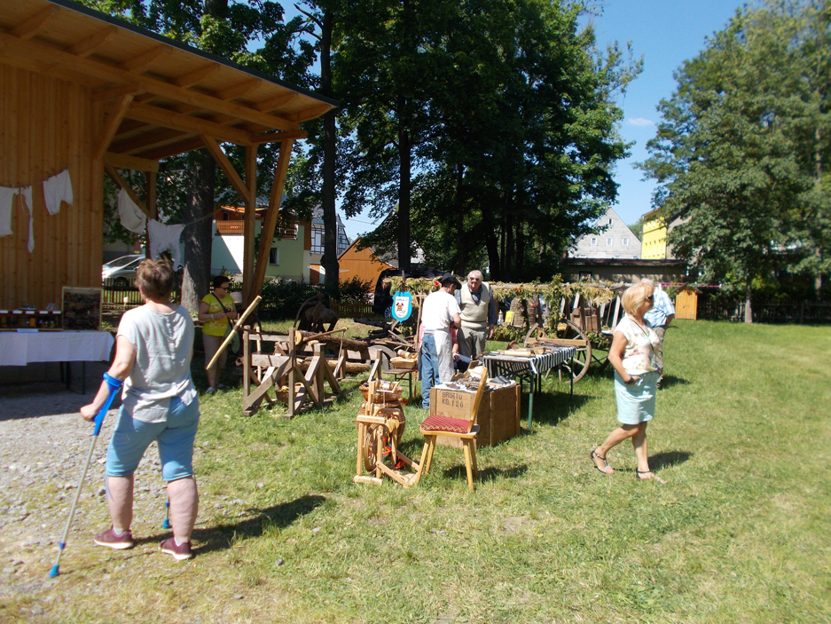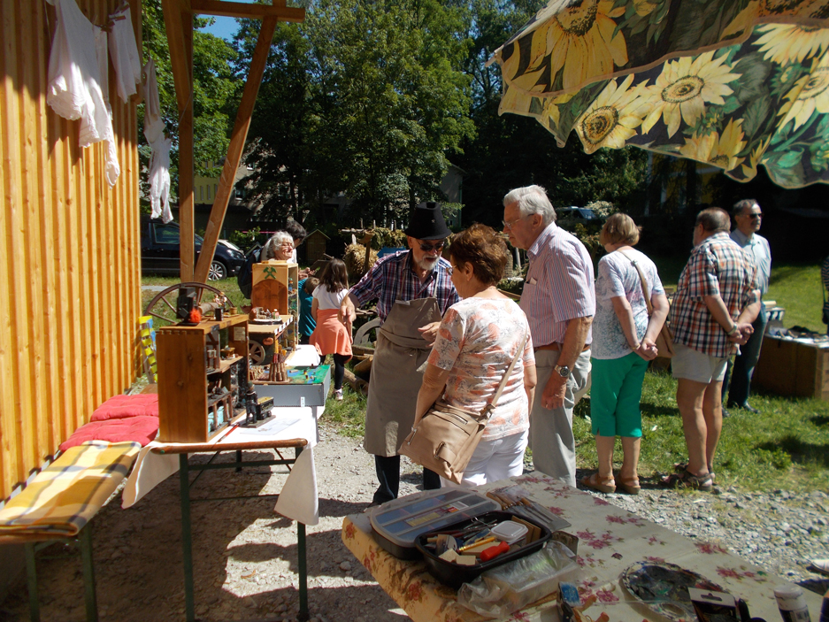 Die erste Veranstaltung war der Familientag in der Papiermühle Zwönitz zu Himmelfahrt. Hier konnte man u. a. wie zu Omas Zeiten Wäschen waschen. Passend dazu hatten wir uns diesmal die Gewerke Böttcherei und Weben herausgesucht und vorgeführt. Zudem waren die Buckelbergwerker mit einigen Exponaten angreist und bastelten mit den Kindern kleine Hunte.